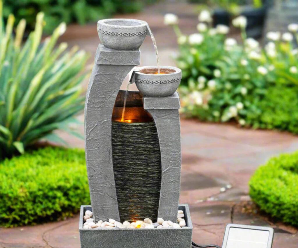 Teamson Home 33.25" Cascading Bowls & Stacked Stones LED Outdoor Water Fountain, Gray
