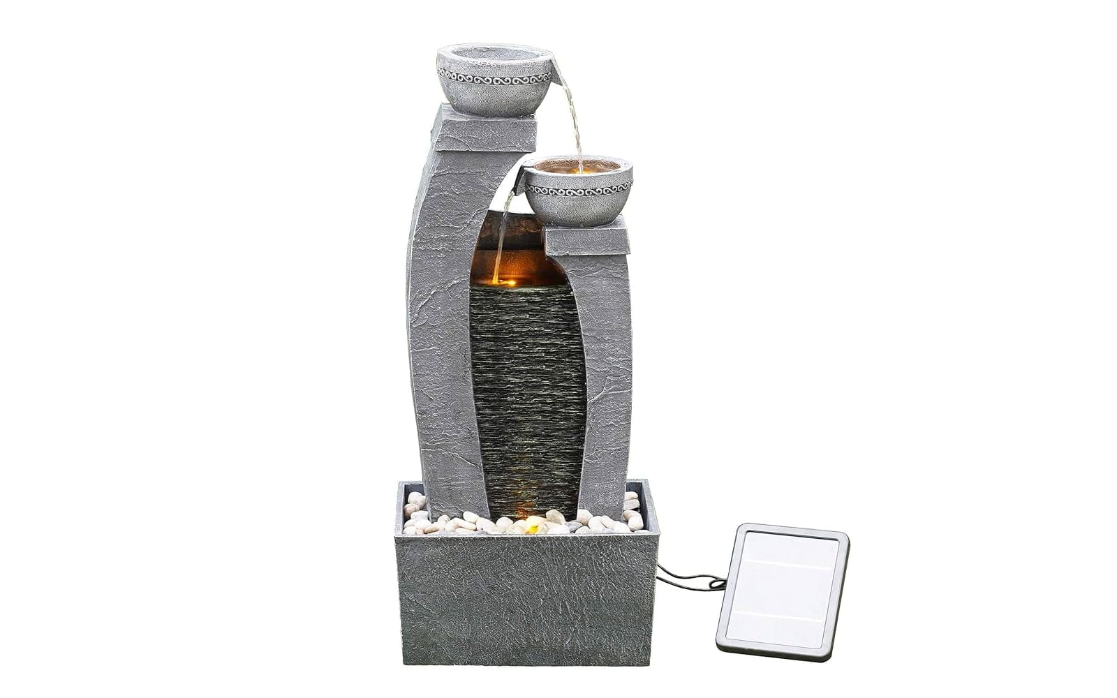 Teamson Home 33.25" Cascading Bowls & Stacked Stones LED Outdoor Water Fountain, Gray